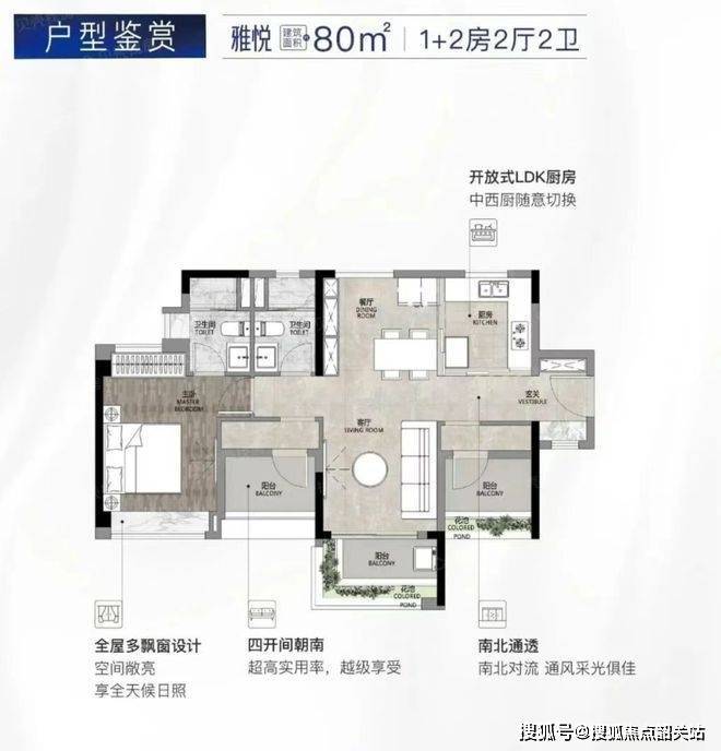 主力户型集中在74㎡到107㎡区间,主要覆盖三房和四房,适合刚需到改善的多种家庭结构。74㎡的三房两卫设计很实用,空间利用率高,有些户型还多送半个卫生间;84㎡左右的户型不少能做到四面朝南,通风采光条件优秀;107㎡的四房则主打舒适,主卧带270度飘窗和大飘窗,阳台做到6米长,观景体验直接拉满。很多户型采用全景天幕玻璃或者大开间设计,实际居住起来的通透感和开阔感很强,动静分区也做得清晰,生活节奏容易拿捏。