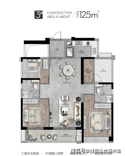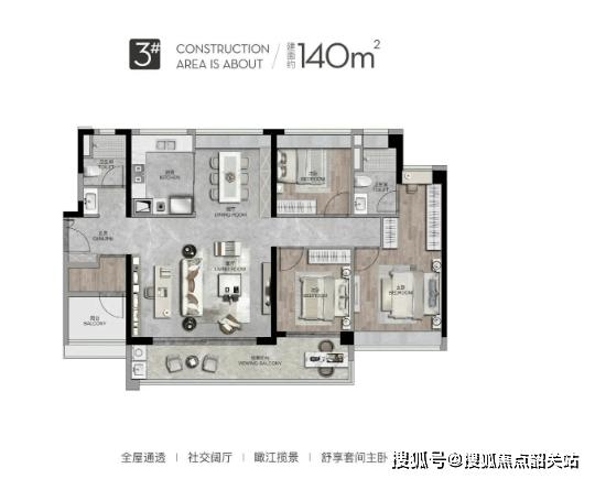 在户型设计上,3#楼延续了西派·澜岸的高端定位与匠心品质,涵盖约125-140㎡的改善型三至四房,户型布局合理,空间利用率高,充分考虑了塔尖家庭的居住需求。大开间、宽阳台的设计,最大化拓展瞰江视野与采光空间,让每一个房间都能拥有充足的阳光与良好的视野;动静分区明确,公共区域与私密区域相互分离,既保证了家人相聚的欢乐,又能满足个人独处的静谧;主卧套房设计,配备独立卫生间与衣帽间,彰显主人的尊贵身份,为业主提供舒适、私密的休憩空间。