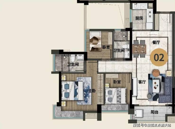 2.南北双阳台设计,多开间南向采光