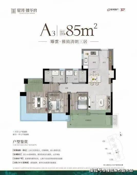 星河臻华府主打85-125平方米的三至四房户型,使用率接近100%,主卧带有270度飘窗,为住户提供了宽敞明亮的居住空间。