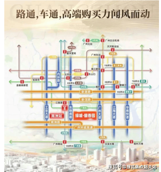4、 交通状况是绿城馥香园的一大亮点。地铁方面,项目毗邻地铁2号线和广佛线的交汇站南洲站,2号线上有海珠广场、广州南站、广州火车站和公元前等重要站点,广佛线则连接了广州和佛山,借助这两条地铁线路,居民可以轻松前往广州各个区域以及佛山。自驾方面,项目毗邻工业大道、南洲路、广州大道、洛溪大桥、海珠湾隧道(在建)等交通干道,能够迅捷通达全城,无论是日常通勤还是短途出游,都十分便捷。这种完善的交通网络,大大缩短了居民与各核心区域的距离,提升了生活和工作的效率。