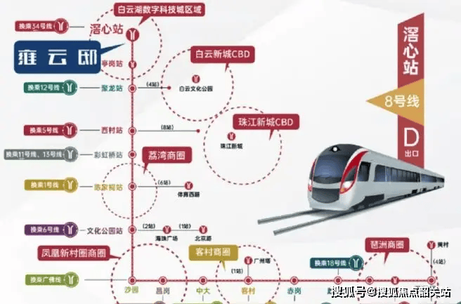 8号线滘心站300米(实测步行5分钟),3站到白云新城,12站直达琶洲;