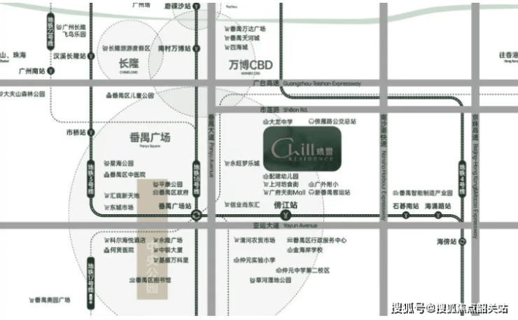 项目区位:中国·广州市番禺区番禺广场板块(番禺客运站北侧,龙湖金地天峯旁边)