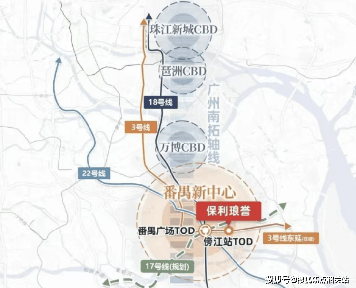 交通绝对是保利琅誉的王牌优势!K哥实地实测,项目距离3号线东延段傍江站直线距离约500米,步行7-8分钟就能到地铁站,完全不用忍受长距离通勤的痛苦。从这里坐地铁,1站就能到番禺广场站,这里可是3号线、18号线、22号线、3号线东延段、17号线(规划中)五轨交汇的超级枢纽,换乘超方便。