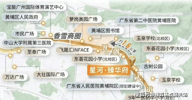 项目距离最近的香雪地铁站约2.1公里,虽然需要借助电动车接驳,但对于在科学城工作的居民来说仍是一个不错的选择。此外,通过小区门口的开创大道和开放大道,居民可以轻松接入广园快速、京港澳高速等重要道路,实现半小时左右直达天河腹地的目标。