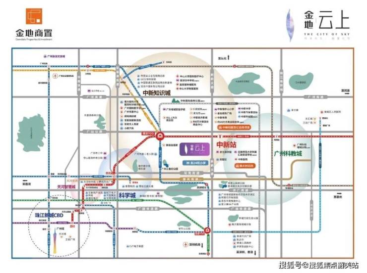 金地云上紧邻黄埔区知识城,位于增城中新知识城、科学城、科教城的三城交汇之处,占据知识城南核心位置,享受知识城高端产业配置。阿里巴巴、中国移动、电信、索尼、三星、宝能等世界500强企业已进驻。交通方面,离项目最近的地铁站是21号线中新站,约2.2公里,车行6分钟,需要个小电驴接驳。从中新地铁站出发,中新-镇龙(换乘快线)-苏元-大观南路,3个站可到达天河。教育方面,项目内拟配建24班小学(最终以政府、教育局发布为准。)项目旁边有规划中的幼儿园,广外增城实验学校(幼儿园-高中)中新中学等教育资源。商业方面,项目直线距离约2公里到达侨建御溪谷集中商业、约20万方中新城市天地商业,约10公里直达永旺梦乐城、新塘万达。产品方面,项目规划了12栋高层洋房,层高在26-33层之间。楼栋采用围合式布局,并且楼栋全部采用南北朝向布局,最大化中心园林景观,每栋都可以享受到中心园景,同时拥有更大的楼间距。南北朝向布局利于通风及采光,是最佳的布局。户型方面,项目建面约60-104㎡二至四房,有2梯6户和2梯7户设计。具体户型为60㎡两房、75㎡三房、85㎡三房、88㎡三房、90㎡三房、104㎡4房。