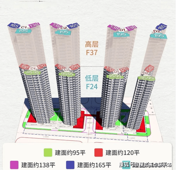 高区(25-37层)升级为两梯三户设计,主打131-195㎡的瞰江大平层,针对高净值改善客群。