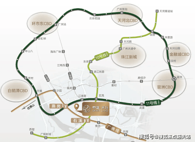 便捷的交通网络:900 米范围内有双地铁口,步行 750 米可达石溪站,900 米可达燕岗站,广佛线、10 号线、11 号线 3 条地铁线环绕。通过地铁,4 站上涌,8 站直达琶洲,9 站直达天河,30 分钟可快速通达广州核心区域,无论是日常通勤还是出行游玩都极为便利。