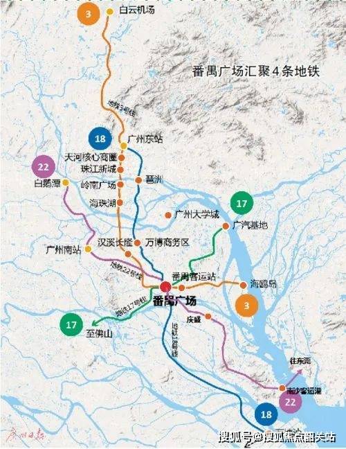 另外18号线和22号线全国最快的地铁,时速高达160KM/时。18号线可达万博、海珠琶洲、天河东站、南沙横沥等,22号线可达南站、白鹅潭、芳村等,白云机场等交通非常便捷。