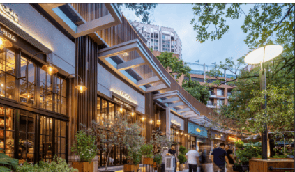 广粤天地是集国际饮食、休闲、文化、服务于一体的街区式商业标杆,也是城央艺术花园。这里汇聚现代潮菜潮跃、高端湘菜品牌 CICADA 宋・湘、“日餐夜酒” 的 BLACK BAMBOO 黑竹等高端餐饮,为业主提供高品质社交平台。2022 年,新世界斥资 5000 多万对其 “不停业” 整体焕新,使其成为社区商业的典型符号。