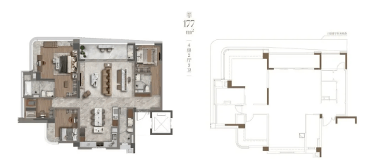 项目户型覆盖 107-177㎡,分低区与高区设计,满足不同改善需求: