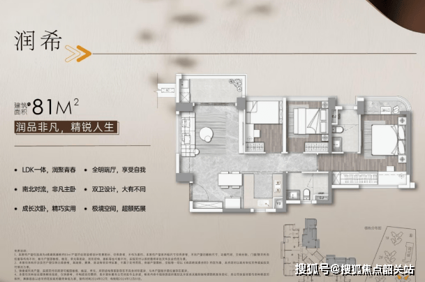 天河润府采用了抬高设计和创新蝶式楼型,北地块整体抬高约11.2米,不仅增强了私密性,还优化了通风采光效果。所有户型实用率超100%,得房率高,采光良好。例如,81平方米户型三面采光,90平方米户型四开间朝南,充分体现了空间尺度和生活舒适度的全新可能。