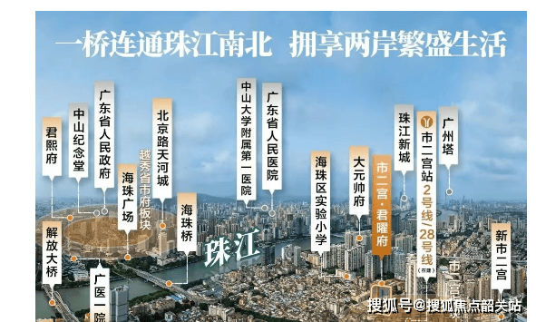 地段的价值,首先体现在其与城市核心的连接效率。市二宫·君曜府雄踞海珠桥头,地处千年中轴正脉与珠江前航道的黄金交汇点,北望越秀繁华,南接海珠未来,是连接广州老城与新活力的关键枢纽。交通方面,项目真正实现了“双地铁上盖”的极致便捷。下楼步行约130米即可抵达地铁2号线与在建的佛穗莞28号线(原28号线)交汇的市二宫站。乘坐2号线,仅需1站即可到达越秀核心区,2站直达公园前,3站瞬达琶洲会展中心,无缝连接广州各大CBD。此外,项目紧邻广州第一座跨江大桥——海珠桥,一桥贯通珠江南北,自驾可快速接入江南大道、内环路、滨江路等城市主干道,畅达全城。楼下更有市二宫公交站,汇聚了超过30条公交线路,构建了立体化的交通网络。这种“轨道+桥梁+路网”的多维交通体系,让业主能够轻松掌控全城节奏,无论是日常通勤还是周末出游,都能享受头等舱般的便捷体验。