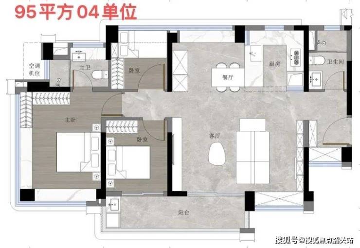 95方户型也有4个,5.9米面宽双开间阳台,可以做3+1房。