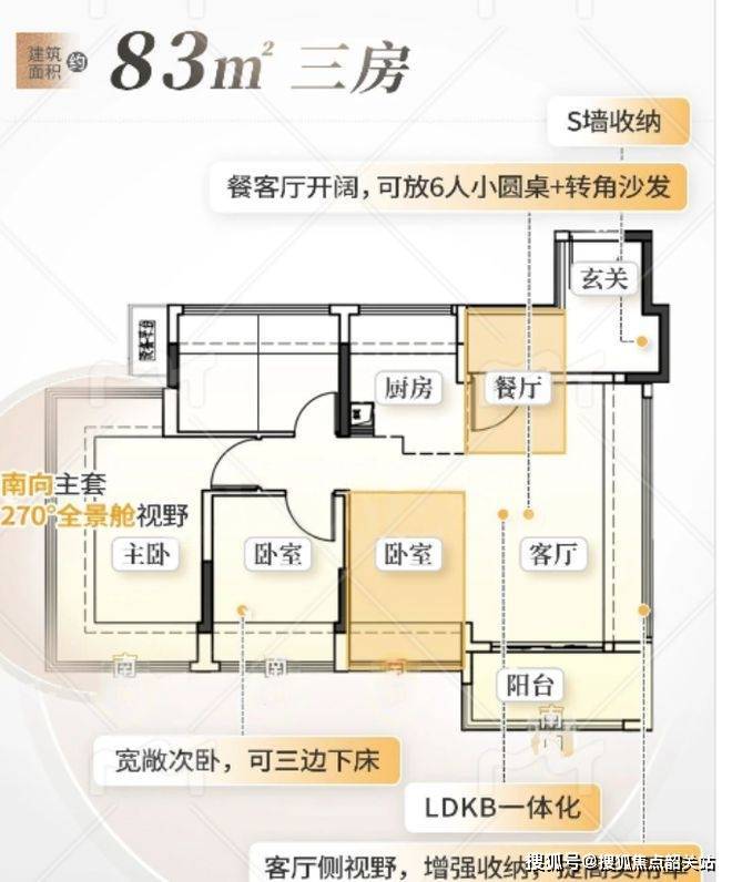 户型设计亮点满满。项目全盘 4 栋楼共 530 户,均为 27 - 37F 高层,产品面积段为建面约 83 - 126㎡,全南向四至五空间。建面约 83㎡的南向三房两卫,单边位预测套内面积更大,且相比之前新规户型有所升级,次卧尺度更大可三边下床。99 平四房两卫户型,拥有 IMAX 宽景阳台、主卧三面环幕视野设计,还能灵活打造 “超聚厅”。109㎡四房南北对流,两个次卧空间大,4.5 开间朝南,双面宽大阳台,玄关处 800 库增强收纳。126㎡五房两卫,5.5 开间朝南,四间卧室朝南,南北对流,客餐厅尺度阔绰,同样有 800 库玄关,舒适度与功能性兼具。整体户型设计合理,得房率高,充分考虑了居住体验。