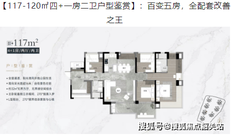 117-120㎡四+一房二卫:灵活多变的五房设计,满足大家庭的需求。