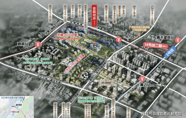 中建·白云之星坐落于白云设计之都板块的核心腹地,地理位置优越,是连接白云新城与嘉禾望岗TOD的重要节点。项目周边轨道交通密集,距离地铁2号线黄边站约800米,临近建设中的14号线二期鹤南站(直线约300米),可快速通达白云火车站、广州南站、珠江新城等多个重点区域。此外,项目毗邻华南快速干线、空港大道等主干道,自驾出行同样高效便捷。无论是日常通勤还是周末休闲,住户都能轻松享受半小时都市生活圈带来的便利与效率,真正实现“轨交+路网”双驱动的立体出行格局。