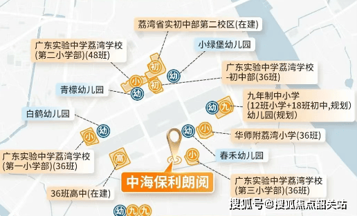 中海保利朗阅自身配建了两所中学,并与广东省实验初中合作,确保教育资源的质量。项目紧邻广东实验中学荔湾学校第三小学部(简称“省实三小”),周边还有多所知名学府如省实一小、省实二小、华师附小等,形成了从幼儿园到高中的全龄段一站式教育圈。