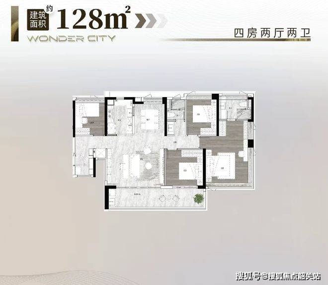 二期户型:建面约105平及128平四房,南北对流,超14m南向面宽,采光通风良好,配备IMAX阔景阳台和270°全景飘窗。