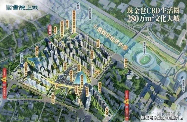 在配套兑现力方面,书院上城已形成完整的生活圈。教育资源尤为突出,小区自带幼儿园,并对口黄埔实验小学和黄埔军校纪念中学,两校均已开学并投入使用,实现小升初直升,免除家长的学位焦虑。商业方面,社区内规划约40万㎡商业体,包括大型购物中心、步行街、高端酒店及甲级写字楼,周边还有山姆会员店、宜家、万象系商业等消费场所。医疗条件同样优质,800米范围内即有广州医科大学附属第五医院,1公里范围可达中山大学附属第一医院。公园资源方面,东苑公园、黄埔儿童公园、黄埔公园等环绕,日常休闲运动条件成熟。