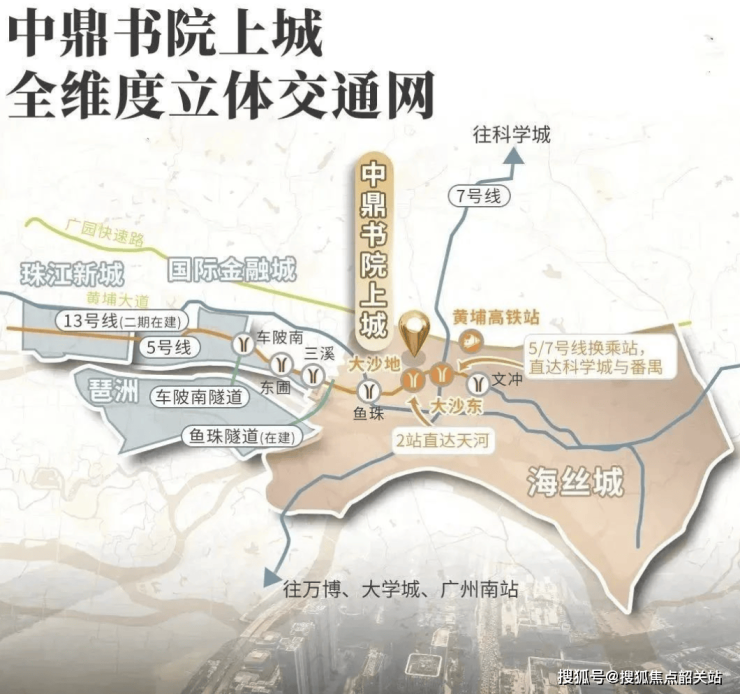 项目位于黄埔老城核心区域,紧邻广州第二CBD发展轴。交通条件突出,步行约600米即可抵达地铁5号线大沙地站,乘坐地铁可直达金融城、珠江新城等核心商务区。道路层面,北接广园快速,南临黄埔大道,东西向通勤便捷。对于日常工作通勤与跨区往来,无论前往天河、琶洲还是鱼珠,都能在30分钟内完成。相比片区部分体量大的项目动辄需公交接驳,珺翎府的地铁可达性更具优势。