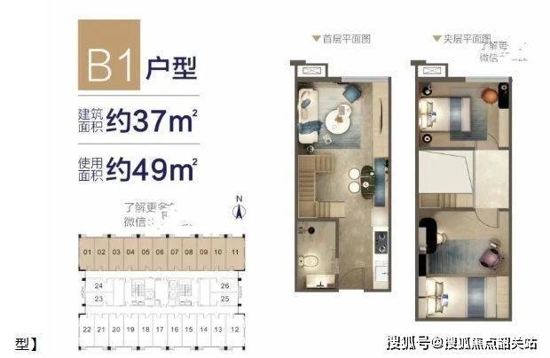 公寓 A 户型面积在 29 - 47㎡之间,虽空间精巧,但布局合理。复式设计充分利用空间,一层可设置为客厅、餐厅与开放式厨房,满足日常起居与用餐需求。客厅连接窗户,保证充足采光。二层为卧室,私密安静,提供良好的休息环境。楼梯下方可设置收纳空间,提高空间利用率。这种户型适合单身人士或年轻情侣,既能满足居住需求,又具有独特的空间体验。