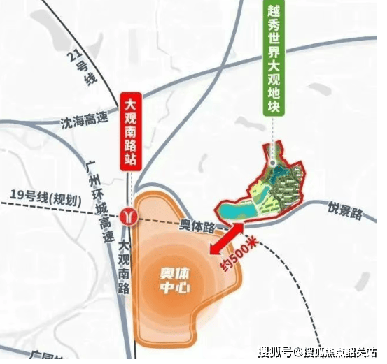 目前,越秀·观樾交通以自驾为主,距离最近的地铁大观南路站约2km 。周边业主主要通过悦景路出行,悦景路连接珠吉路与奥体路,进而连通广园快速、大观南路等主干道。不过,现状交通稍显单一。