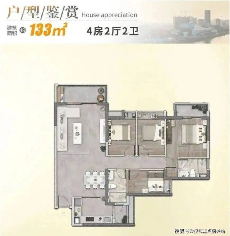 ▌133㎡天幕四房:三面单边+百变三阳台,三代同堂各有天地
