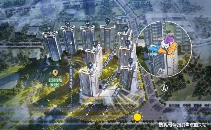 内外双园——外享市政公园,内拥围合式丰盛园林外邻集“生活、度假、休闲”的市政公园,社区内配套内部大围合式园林,开阔楼间距确保每个户型通风日照采光效果。