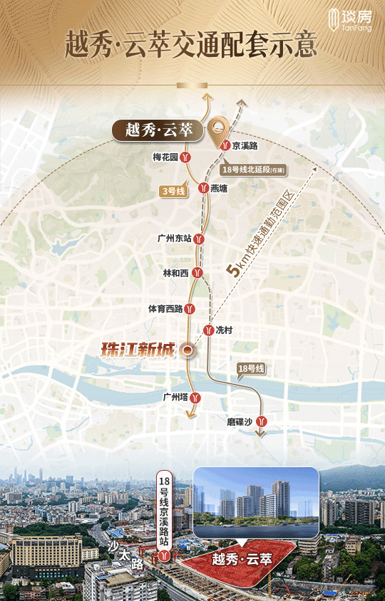 快速通勤:乘坐18号线,无需换乘即可直达天河北、珠江新城、琶洲等地,对于上班族而言极具吸引力。