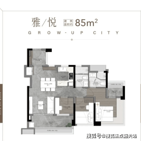86㎡三房两厅两卫:超 103% 使用率,实测套内约 89㎡;一期断货王升级版,南向面宽 11.1 米,5.4 米 “跑道式” 阳台(可改造为休闲区 + 晾晒区);主卧带 270° 无立柱景观飘窗,双进私密玄关保障收纳,适合三口之家,总价可控。