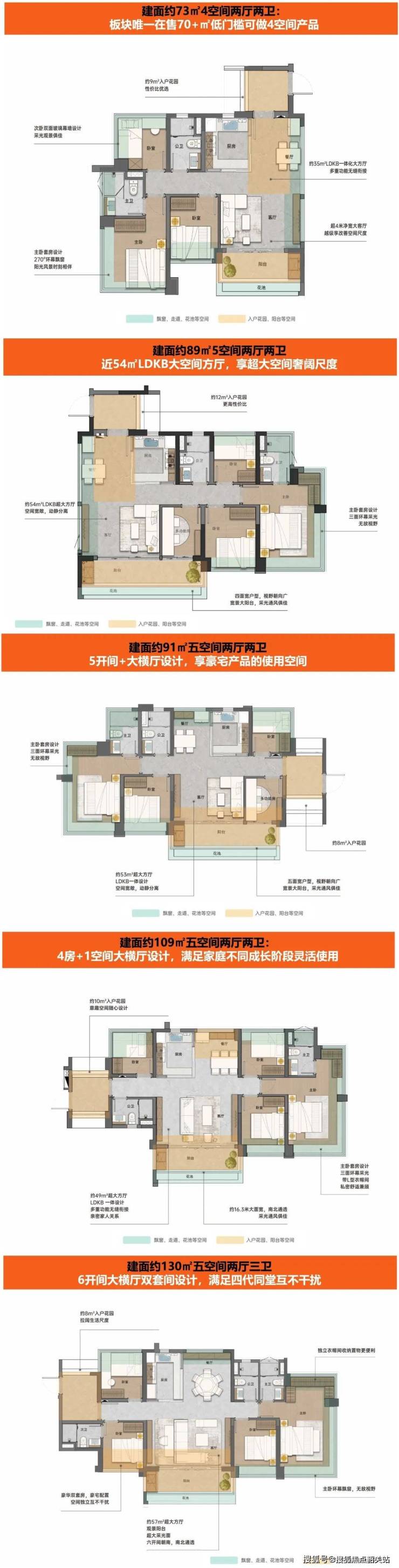 高使用率:阳台、花池、飘窗等部分赠送面积大,使得使用率达到惊人的130%。
