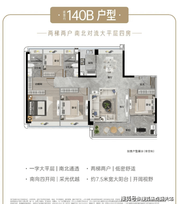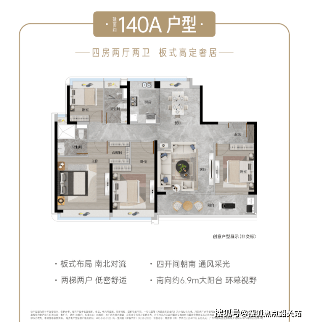 建面约140a㎡高定四房:景观视野佳,性价比突出。