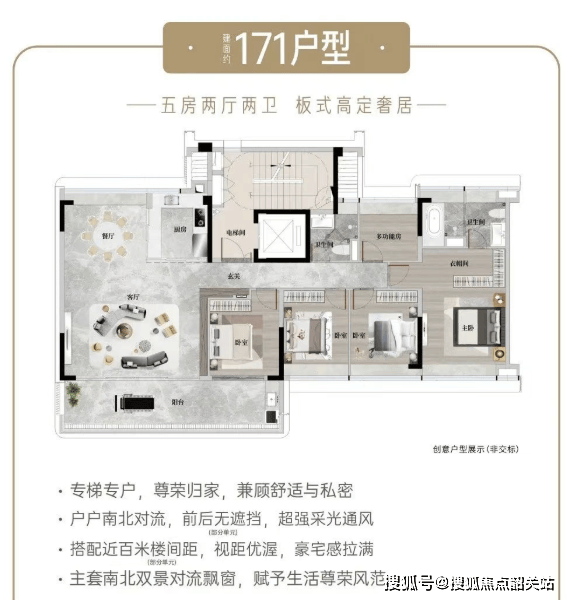 建面约171㎡奢适五房:享长隆头排景观,专梯入户,尊享私密空间。