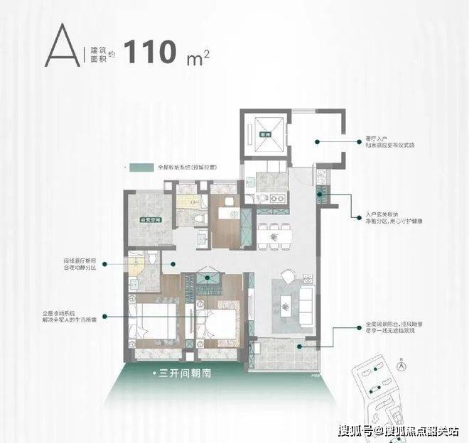 户型设计各有亮点。建面约 90㎡三房二卫户型位于每栋楼中间位置,两户共用双开门电梯,三开间朝南,两间南向房间空间充足,主卧带主套及衣帽间,满足新婚家庭需求,价格相对亲民。建面约 100㎡三房二卫户型处于每栋楼两侧单边位,进深远大于开间,呈竖向长方形,二开间朝南,主卧隐私性好,客餐厅空间感优异,使用率超 9 成。建面约 110㎡四房二卫户型位于每栋楼单边最好位置,入户赠送电梯间最大,三开间朝南。虽未明确提及得房率,但从户型设计和电梯间赠送来看,空间利用较为合理,居住舒适度较高。