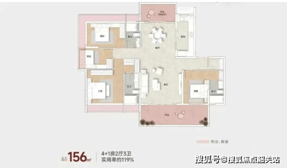 在产品打造上,力迅樾公馆摒弃了老城区常见的塔楼与紧凑户型,转而采用全南向板式结构,主力推出98㎡、108㎡、156㎡三种四房户型,全部为新规设计,实用率高达110%以上,最高可达118%,远超市场平均水平。