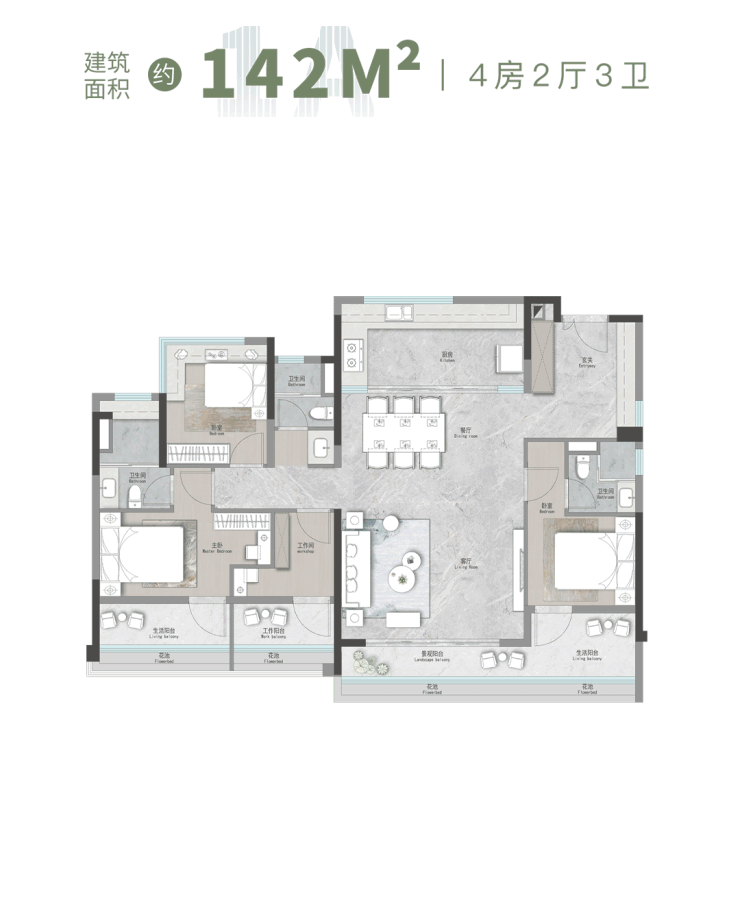 目前在售的楼栋包括1-4栋和1A栋,提供建筑面积约91至182平方米的三四房户型。这些户型设计注重实用性,南向全明设计,高赠送面积,使用率超过100%,满足不同家庭的需求。