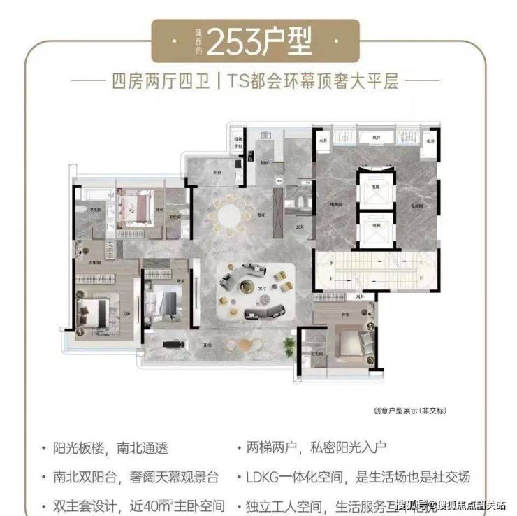 ·中轴园林上,环幕景观楼王·限量级CBD低密板式高层·专梯专户 | 私属电梯门厅,尽显私密尊崇·四开间朝南,南北对流阳光满格·双阳台设计,约10.3米宽巨幕阳台·双主卧套房,让孩子多一度独立空间·总统级主卧奢套,步入式衣帽间、双洗手台、浴缸