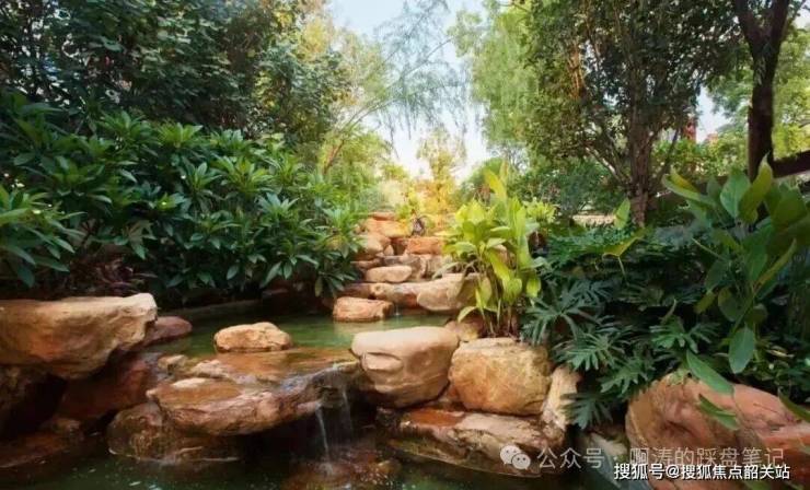 园区匠造山水园林:黄蜡石叠瀑溪流、全冠移植香樟、300年古茶花树,四季皆景。