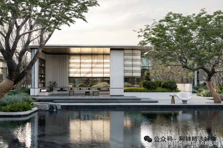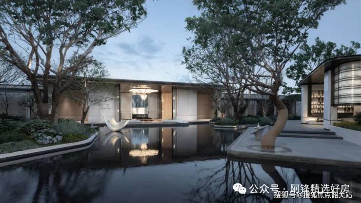 近1000方的水景空间,结合眼前的百年朴树王,让业主们时刻收获空间质感肌理带来的尊崇感。