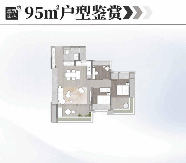 建面约107平产品根据不同改善家庭的需求,打造了两种户型。两个户型都做到南向四开间,确保不同家庭成员的居住舒适度。阳台270°环幕视野,江景、城景一览无余。屋内都预留有X空间,满足家庭进阶中的空间需求。