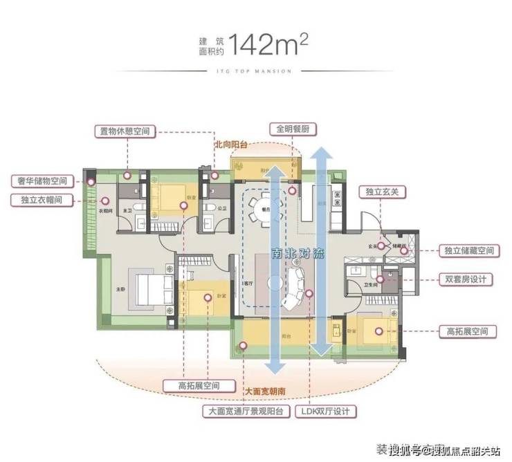 LDKB一体化设计:IMAX巨幕会客厅,南北对流、全屋四开间朝南。