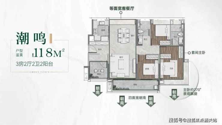 其中,约100㎡的两房两厅两卫三阳台户型,以高得房率与通透格局著称,三阳台设计巧妙引入自然光与清风,兼顾实用与诗意;约118㎡的三房两厅两卫两阳台户型,则通过科学动线与功能分区,实现三代同堂的和谐共处;而约140㎡的大三房产品,不仅拥有阔绰主卧套房与双阳台配置,更在空间尺度与私密性上全面升级,彰显改善型人居的尊崇感。