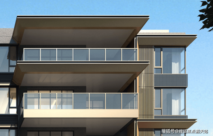 在立面设计上,项目采用了现代公建风格,鉴证国际美学。香槟金色的哑光铝板与深灰仿石涂料相结合,勾勒出简约大气的建筑轮廓。楔形框架和横形铝合金格栅的搭配,不仅提升了建筑的质感,还带来了超大屏的采光面和观景视野。流体曲线的勾勒,让建筑在光影交错中呈现出动态的美感,宛如一件件艺术品矗立在城市之中。这种高颜值的立面,不仅提升了小区的档次,也让业主的面子十足。