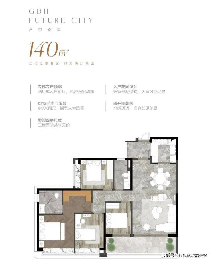 在户型设计上,项目推出了建面约140-264平方米的现代美学大宅和建面约129-148平方米的都芯轻奢私邸两大产品线。每种户型都经过精心推敲,力求在有限空间内实现最大化的功能性和舒适性。以主力户型为例,超20米的连续采光面设计,确保了室内充足的自然光照;户户配备的大尺度面宽阳台,不仅拓展了生活空间,更提供了绝佳的观景视角。许多户型可以实现东南北三向望山,将白云山的秀美风光尽收眼底。