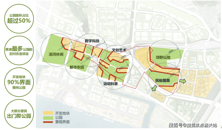 结合本土文化内涵塑造9个特色主题公园:海丝科技公园、都市农田公园、岭南艺境公园、沙浦国学公园、城市塑影公园、缤纷童趣公园、龙舟生态公园、远洋文化公园、桥畔运动公园。