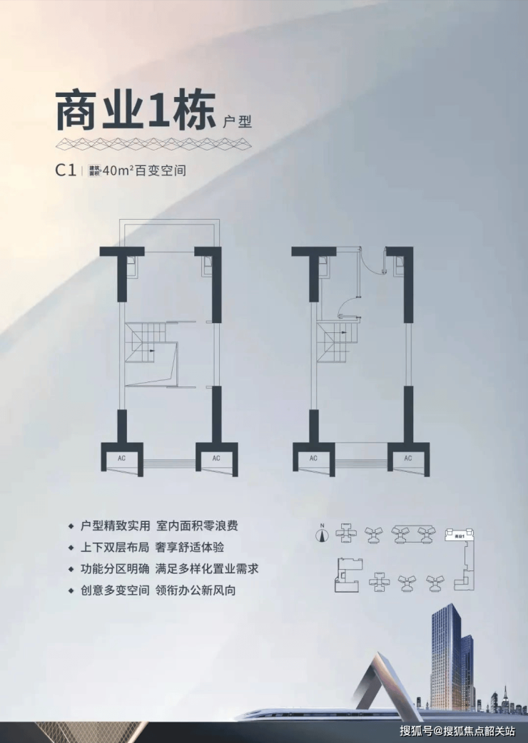 建面约40-60㎡LOFT产品,4.5米层高,功能百变,南北向通透采光。
