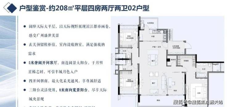 保利阅江台提供了多种户型选择,包括120-143平方米的四至五房以及220平方米的大平层。所有户型均采用3.15米层高的设计,空间开阔舒适。特别是120-143平方米的户型,不仅实用性强,而且动静分区合理;而220平方米的大平层则配备了专属入户空间,客厅开间达5米,南向阳台宽达8米,南北通透,采光极佳。
