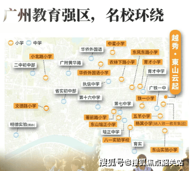 越秀东山云起所在的越秀东山,素有 “广州小海淀” 之称,是广州名校资源浓度极高的片区,集中了众多百年老校、省一级中小学,如省实、执信、铁一、广附等名校皆汇聚于此。项目地块对口学位为杨箕小学,该校已被列入广州市铁一小学教育集团,师资口碑良好。初中资源更是堪称 “豪华阵容”,根据越秀区最新小升初分组表,对口初中有广州 7 中、13 中、16 中、培正中学、省实中学、铁一中学等。选择在此购房,业主至少 12 年无需担忧子女教育问题,为孩子的成长提供了坚实的教育保障。