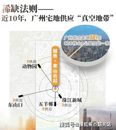 越秀东山云起所处地段堪称珍稀。2024 年 12 月越秀地产拿下该地块,这是越秀区自 2020 年越秀南地块出让后,4 年来首次公开卖地。以项目所在的广州大道中地块为原点,周边珠江新城、动物园、东山口、五羊邨等区域,过去 10 年供地皆为 0,新盘更是罕见,上一个项目还是 2014 年杨箕村旧改入市,可谓片区十年一遇的稀缺新盘。项目与珠江新城仅一路之隔,位处城市新旧交界处,左手新河浦,右手 CBD,集越秀与天河两区 “双核心” 资源于一身,地段价值不言而喻。